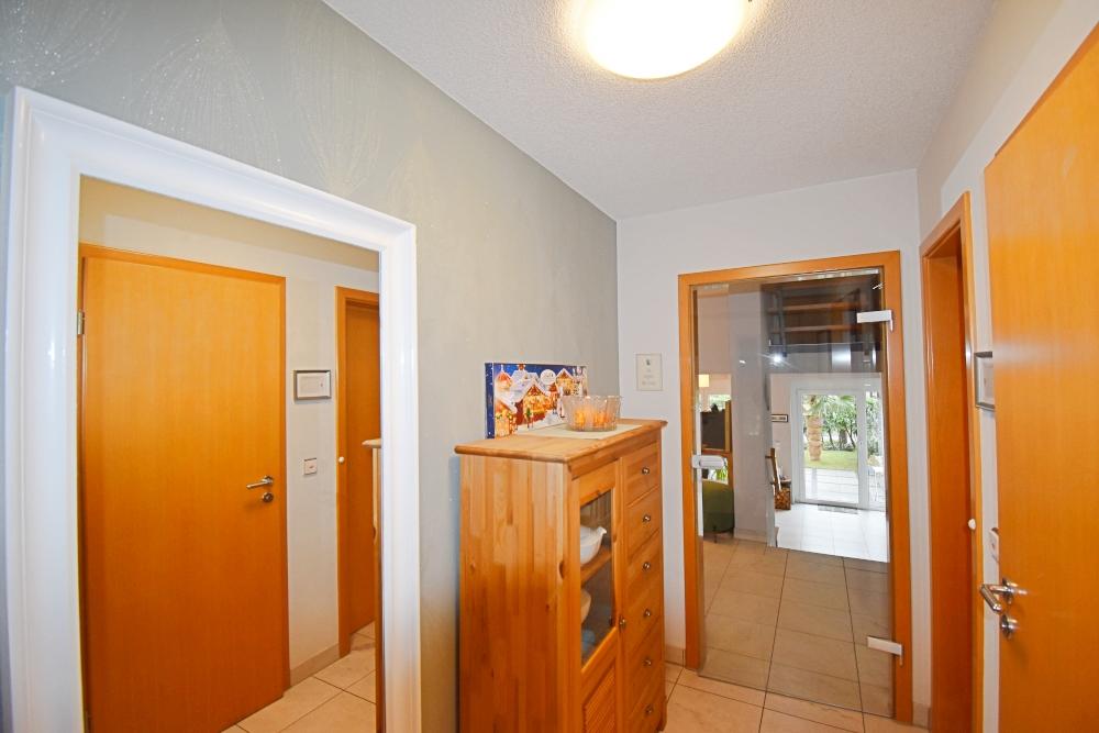Das gesamte Haus wurde von den aktuellen Eigentümern stilvoll und hochwertig ausgestattet. Die Bodenbeläge variieren aus ansprechenden Fliesenbelägen sowie Laminatböden. Bad und Gäste-WC wurden in den Jahren 2023/2024 teils durch neue Armaturen (WC, Waschbecken, Schränke etc.) modernisiert. Auch die Bodenbeläge in den Zimmer wurden im Lauf der letzten Jahr erneuert. Eine hochwertige Einbauküche ist vorhanden und bereits in den Kaufpreis integriert. Zudem verfügt das Haus über eine Wasserenthärtungsanlage sowie über eine Wallbox (11kw) aus dem Jahr 2020. Der gesamte Außenbereich wurde aufwendig und liebevoll angelegt. Im Jahr 2019 wurde zudem eine neue Haustüre mit Gegensprechanlage und Türöffner mit Fingerabdrucksensor verbaut. Die Wärmezufuhr erfolgt über eine Gastherme.