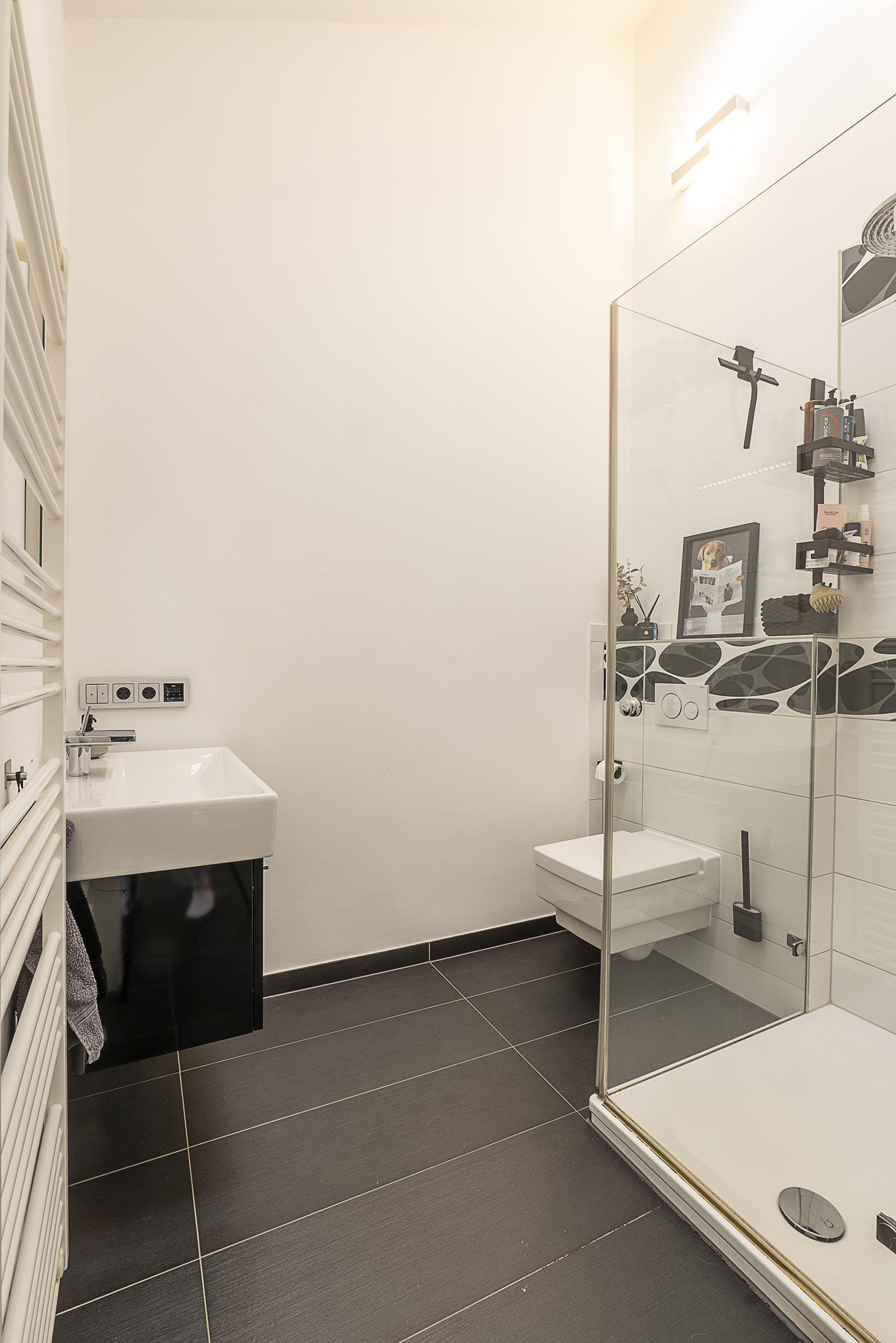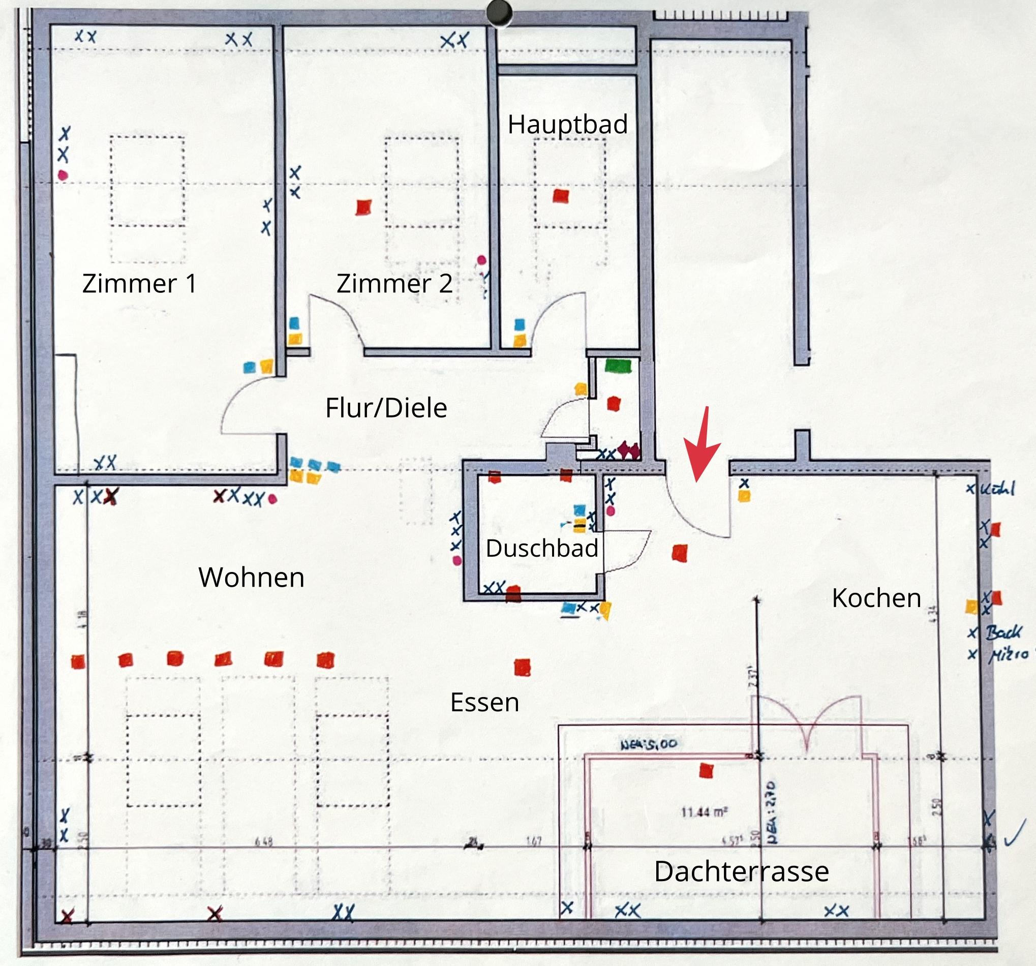 Die gesamte Wohnung wurde wie angedeutet im Jahr 2014 kernsaniert und neu ausgestattet. Neben neuen Fenstern und Terrassentüren wurden weitere, großflächige Dachfenster mit elektrischen Außenrollläden, neue Bäder und Böden sowie eine sehr hochwertige Einbauküche verbaut. Die Verdunkelung aller Fenster- und Terrassenelemente erfolgt ausschließlich elektrisch. Auch die